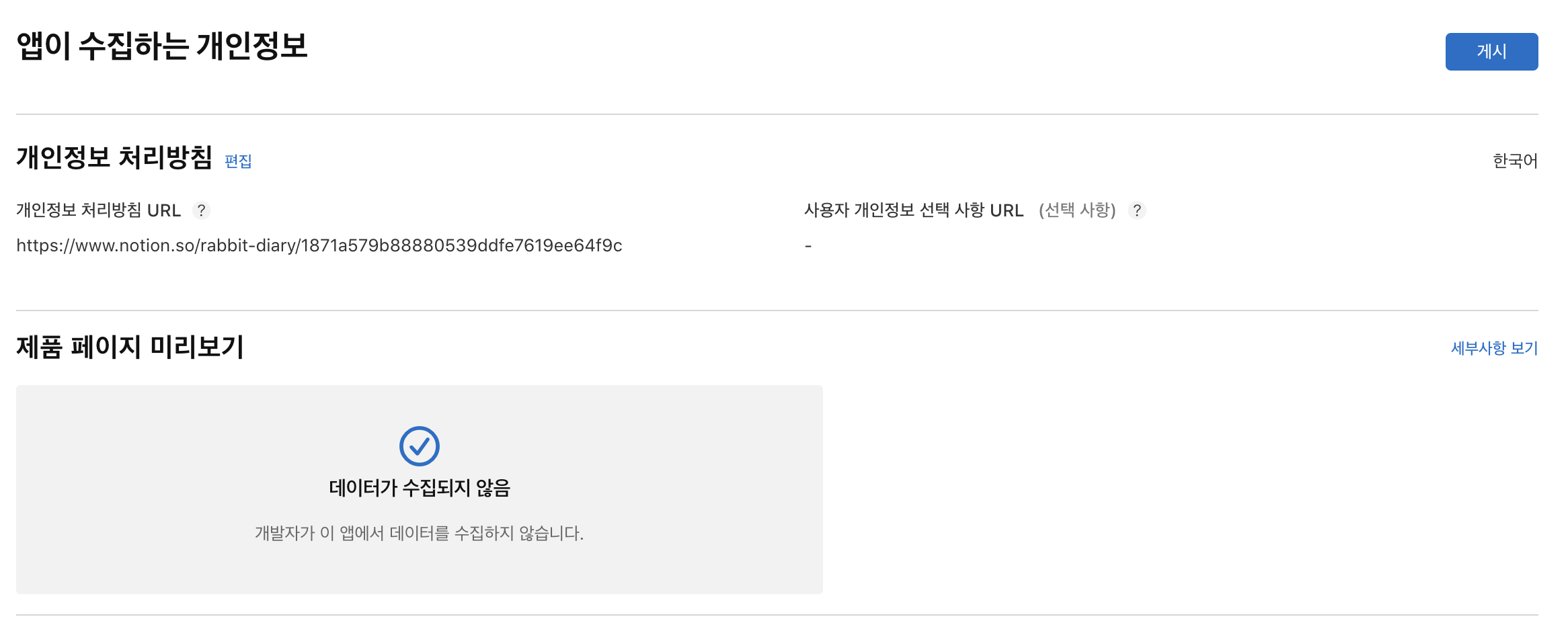 이 처리방침 작성하는게 제일 귀찮았습니다... 사실 제가 제대로 작성한 건지도 잘 모르겠습니다;;