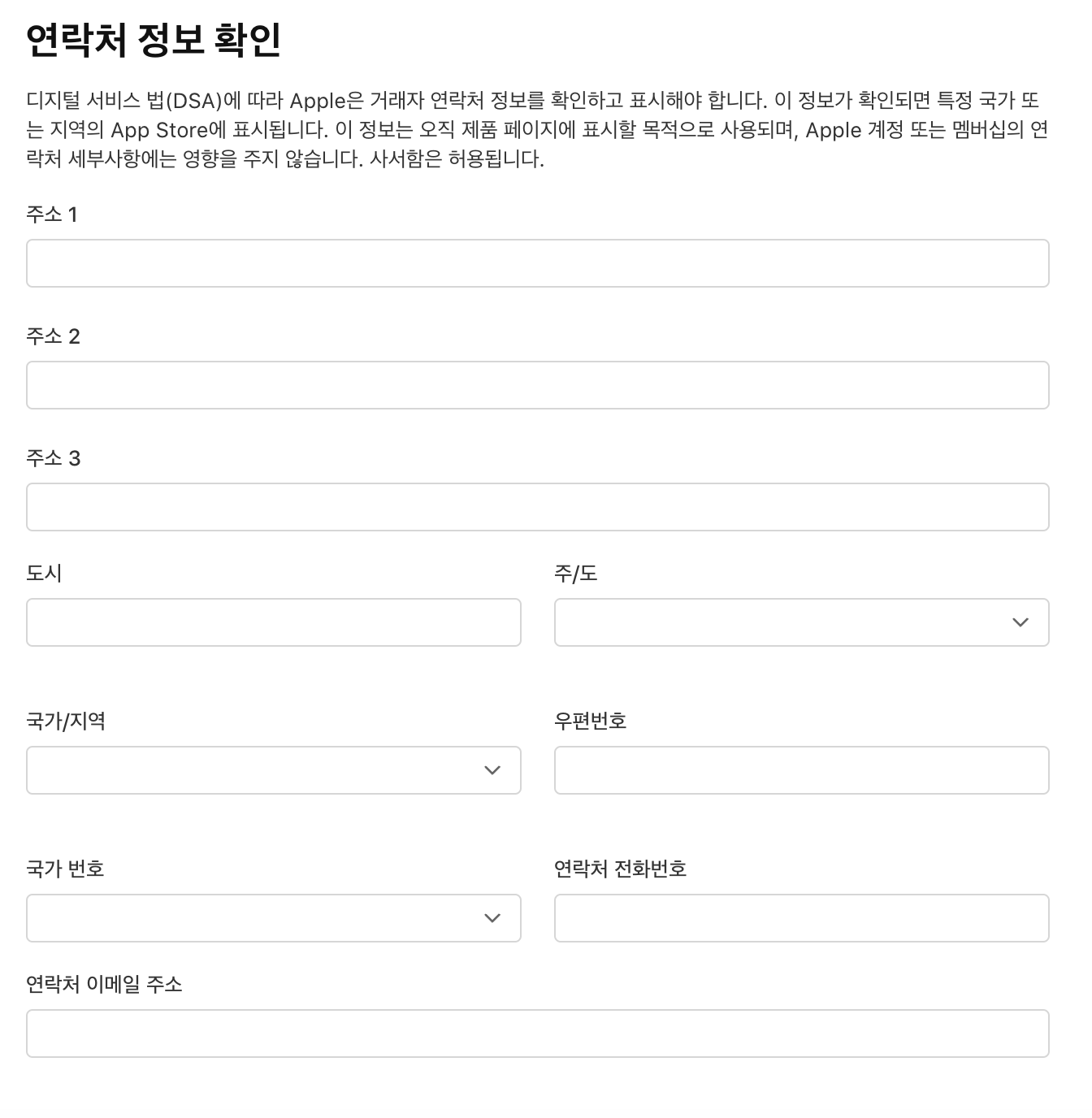 여기서 입력하는 정보는 Apple Developer 계정의 정보와는 무관합니다