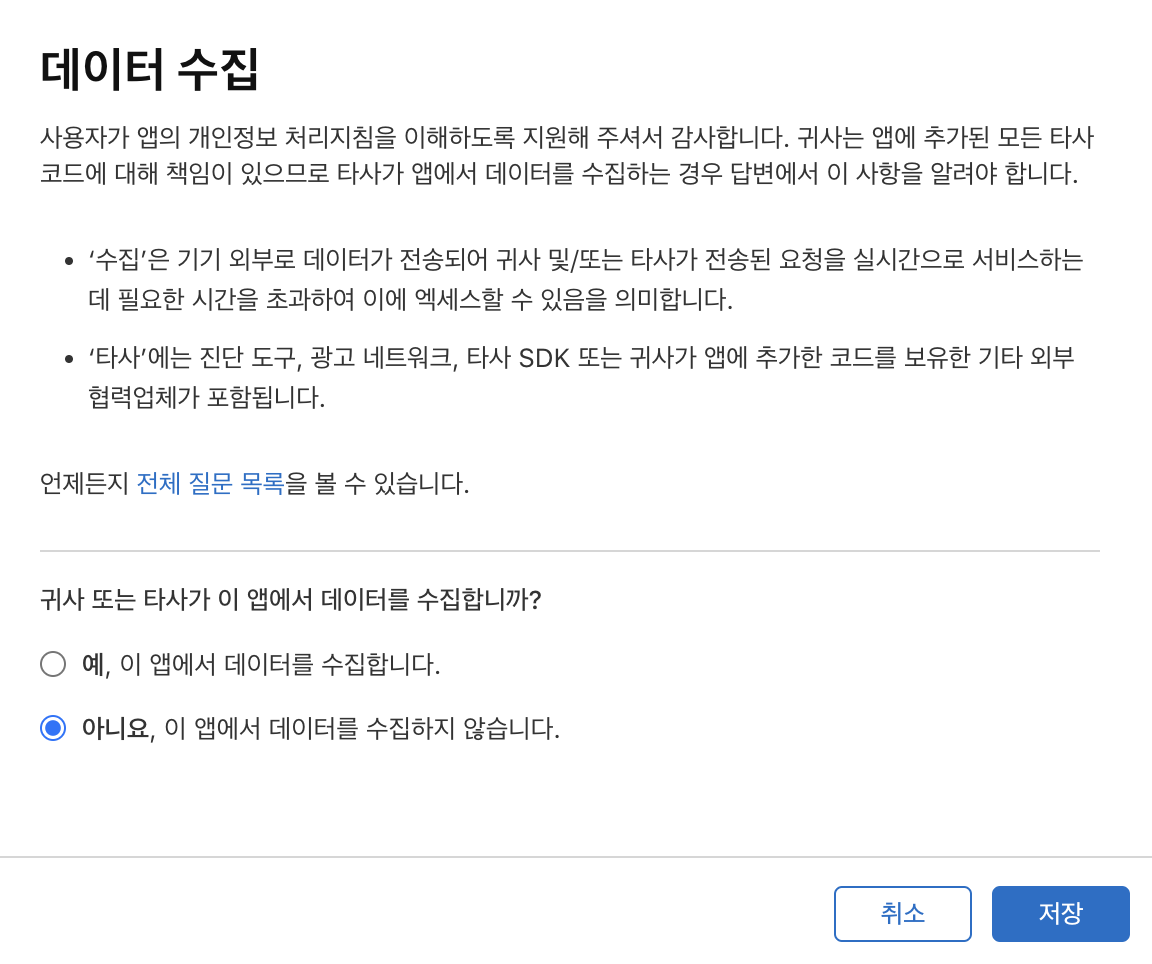 그래서 데이터를 수집하지 않는다고 체크해 주었습니다