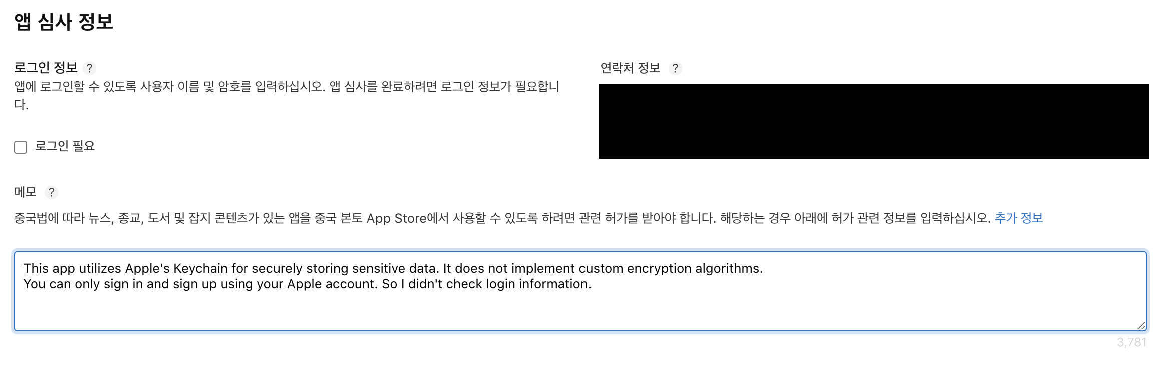 메모에 Apple 계정으로만 로그인 할 수 있어서 체크를 안했다는 설명을 덧붙였습니다